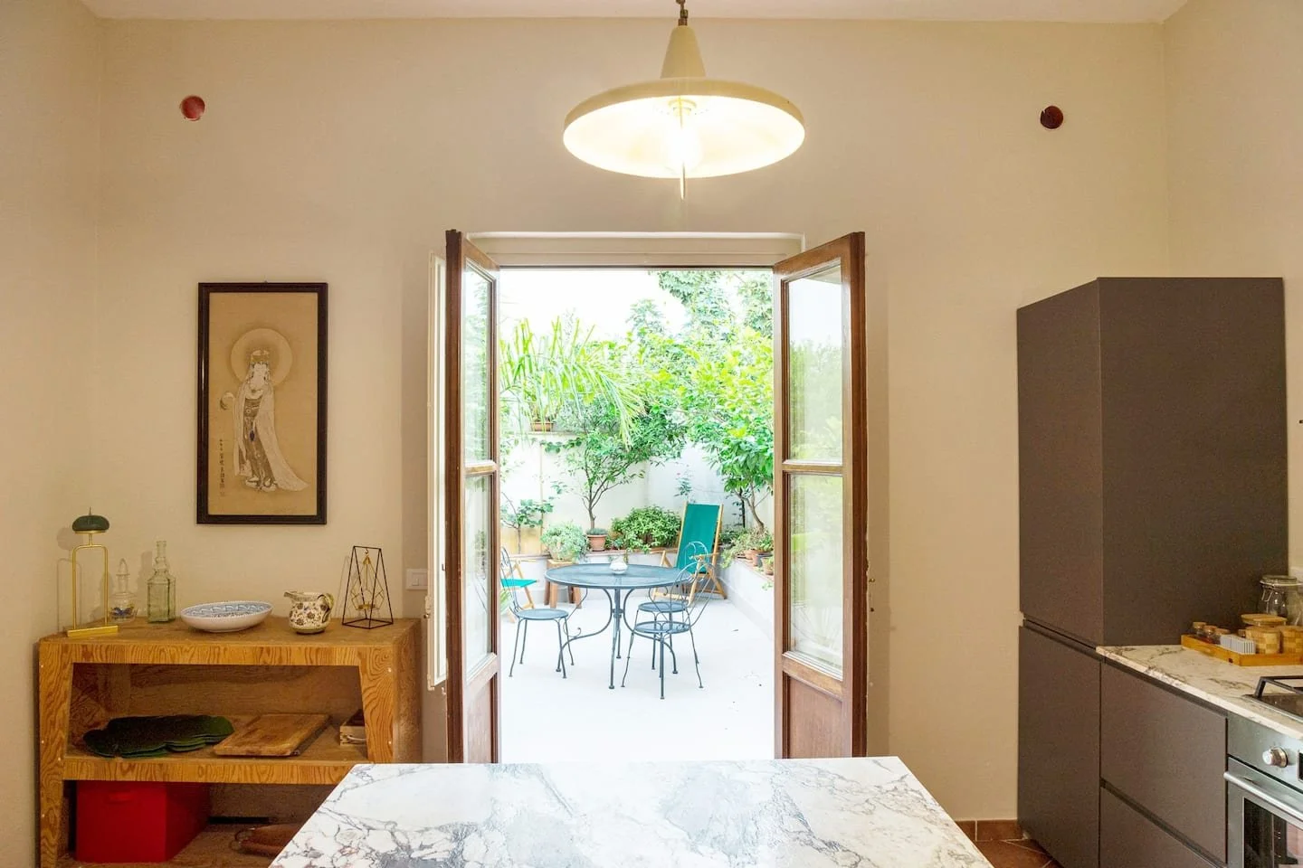Whilst balconies and small terraces are common across Palermo’s Airbnb market, it’s rare to have your own private garden, as in the case of this beautiful, centro storico ground floor apartment. Lots of room, decor is a mix of modern, antique and thrifted, the kitchen is excellent and the outside space simply divine.