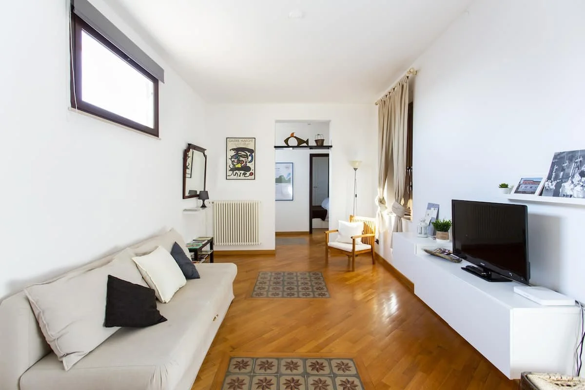 In a similar vein to the above Airbnb Plus property, this one-bed apartment is a little souless but its clean, modern design, and price point (from just €30 a night!) makes it an excellent option for those seeking something a tad more budget friendly in a great location.