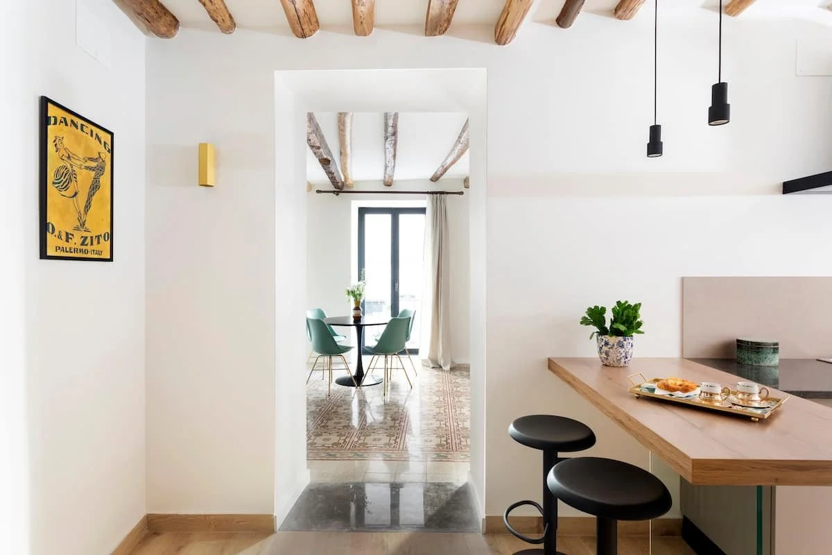 A lovely & tastefully furnished studio, located in the heart of Palermo, a few steps away from Teatro Massimo and the archeological museum Salinas. Modern design but retains original features like exposed stone and wooden beams. Also has cute little balcony.