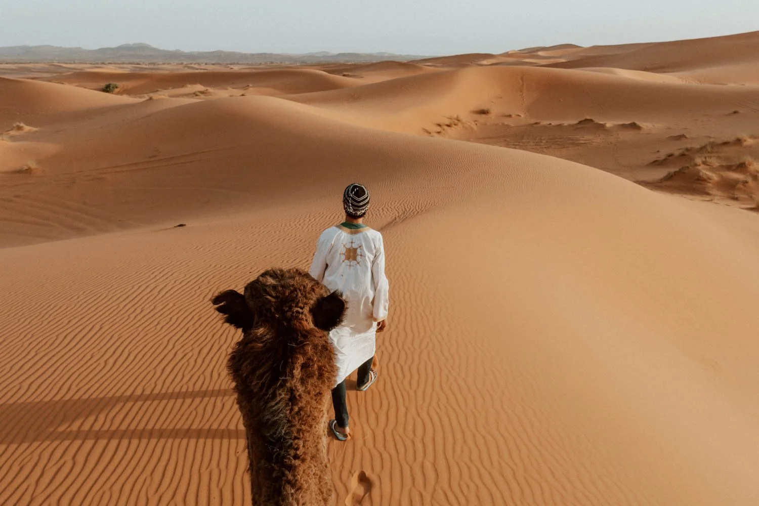 The cost for one nigh includes includes transport to the camp from Merzouga (and back again), guides, dinner and breakfast, bottled water, private tent accommodation, and sunset/sunrise camel treks.