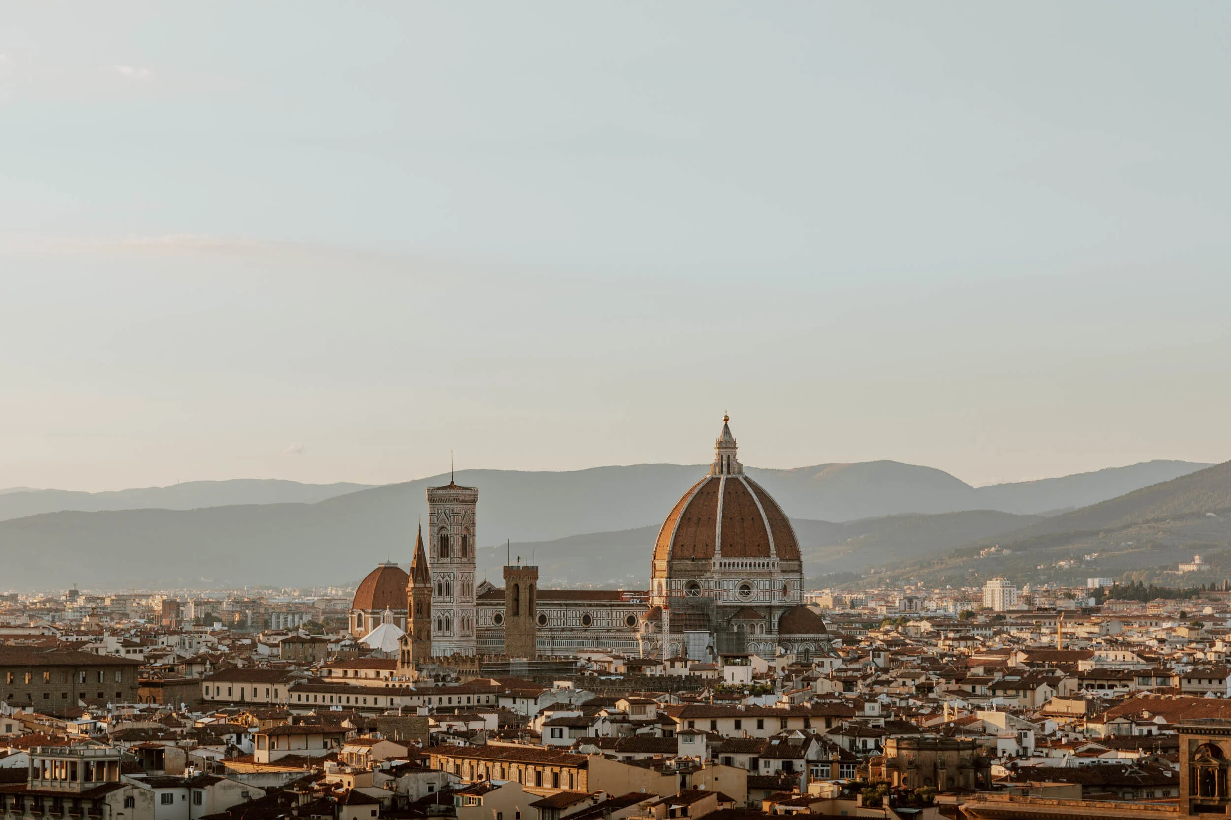 The four bridges reach out over a Arno flowing gold. The Duomo and Palazzo Vecchio’s Arnolfo Tower point to the heavens, gracefully imposing themsevles over terracotta rooftops and the cityscape. In the background, the Tuscan hills turn from wine to shadow as the sun bids its final salutation.