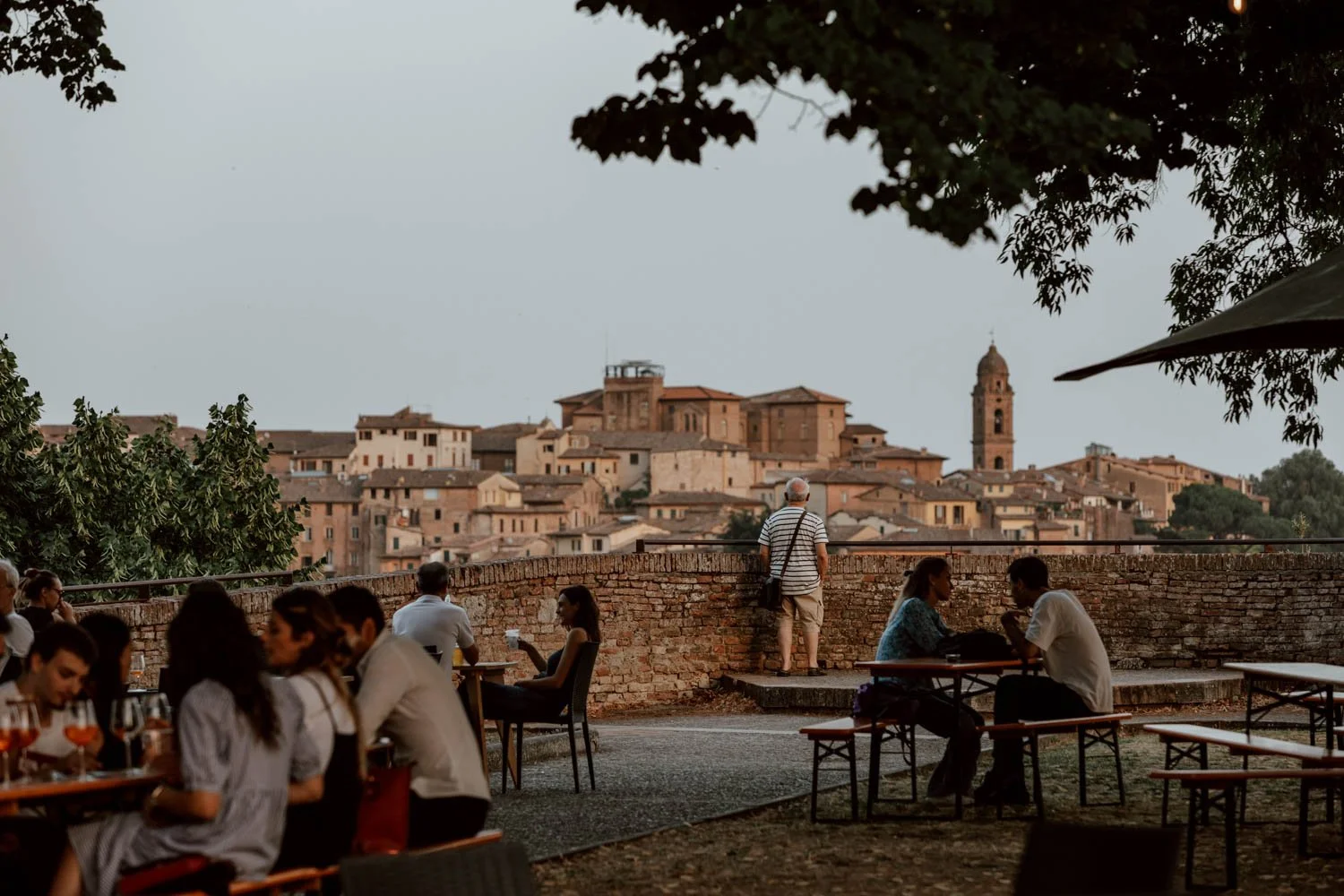 On our third day, we wanted to escape the afternoon crowds, and ventured beyond the historical centre and through to 'new' Siena (which really just looks and feels a lot like of 'old' Italy!). Our destination was Fortezza Medicea, an old red-brick fort which has evolved into a park for dog-walkers, runners, yogis, and young couples. However, it was the outdoors seasonal Bar Fortezza which we were most excited about. Full of pretty young things enjoying Aperols with a good soundrtack and glorious sunset view of old Siena in the distance, it was exactly what we needed to find!